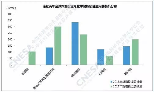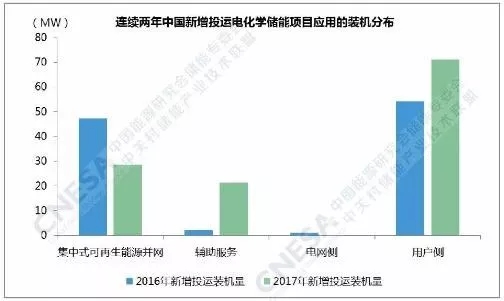 從應(yīng)用分布上看,新增投運(yùn)項(xiàng)目全部應(yīng)用在集中式可再生能源并網(wǎng)、輔助服務(wù)和用戶(hù)側(cè)領(lǐng)域。其中,用戶(hù)側(cè)領(lǐng)域的功率規(guī)模最大,超過(guò)70MW,輔助服務(wù)領(lǐng)域的同比增速最大,接近1000%。