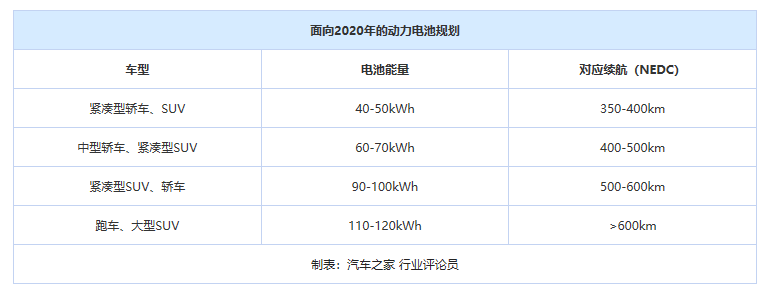 目前主流的電池系統(tǒng)能量密度在140kWh/kg-160kWh/kg之間,續(xù)航里程設(shè)計已經(jīng)普遍達到350-400Km。 國內(nèi)高端電動車型的規(guī)劃是在2020年左右,通過電芯設(shè)計的優(yōu)化,往上把續(xù)航里程提高到500Km。目前來看國外的大眾MEB平臺、寶馬的iNext系列和奔馳的EQ系列都是規(guī)劃了不同的能量密度,通過控制總的電池裝載量來選擇。