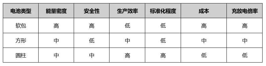 此外,方形、軟包和圓柱電池的差異性還體現(xiàn)在壽命、成本和充放電倍率等方面。業(yè)內(nèi)人士認(rèn)為,理論上,三種封裝方式的這些性能略有差異,但在主流車型上,都可以達(dá)到行業(yè)標(biāo)準(zhǔn),并不存在明顯區(qū)別。