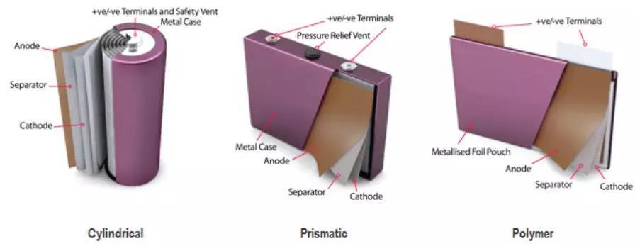 目前,市場上的鋰離子動(dòng)力電池按照外形,或者封裝方式可以分為方形、軟包、圓柱三種。
