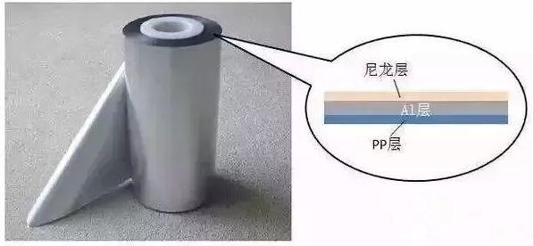 鋁塑復(fù)合膜外觀及內(nèi)部結(jié)構(gòu)示意圖