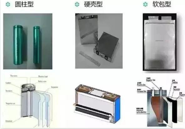圓柱、方形、軟包電池的外觀及內(nèi)部結(jié)構(gòu)示意圖