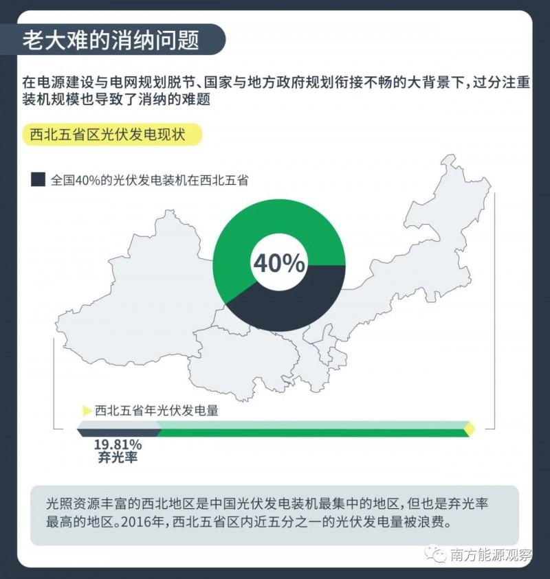 由于電源建設與電網(wǎng)規(guī)劃脫節(jié),當?shù)叵{能力有限,在電網(wǎng)規(guī)劃尚未落實的情況下,大規(guī)模光伏電站投產(chǎn)以后出現(xiàn)并網(wǎng)困難的問題。國家能源局數(shù)據(jù)顯示,2016年西北五省區(qū)(陜西、甘肅、青海、寧夏、新疆)平均棄光率高達19.81%,相當于近五分之一的光伏發(fā)電量被浪費。