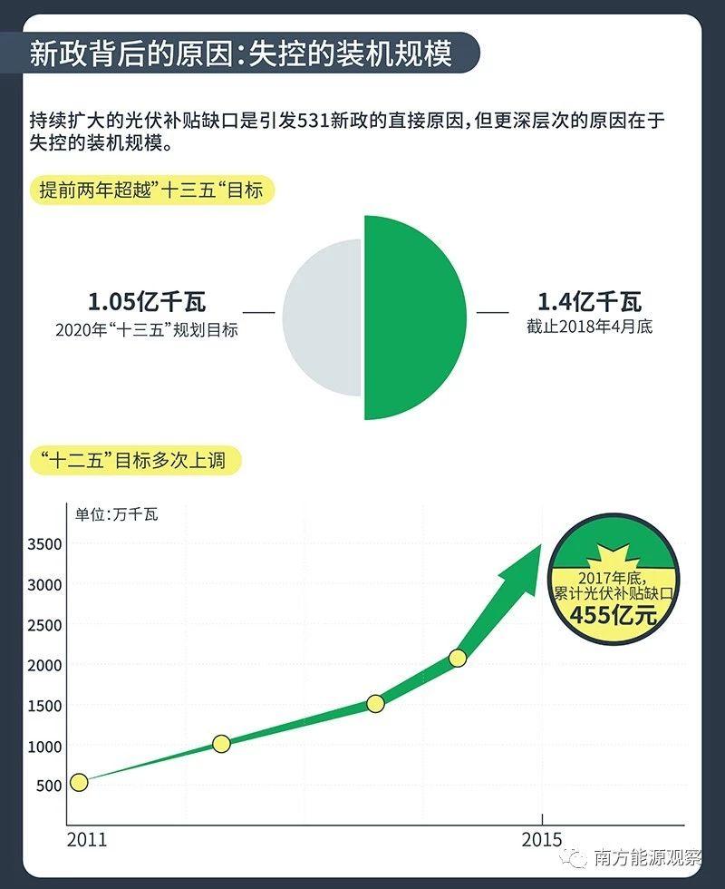 但國家層面與地方政府之間對于光伏發(fā)電的規(guī)劃并不協(xié)調(diào),尤其是在光伏電站審批權(quán)下放后,更增加了能源主管部門管控光伏發(fā)電規(guī)模的難度,而規(guī)模失控正是造成光伏補貼缺口逐年拉大的主要原因。