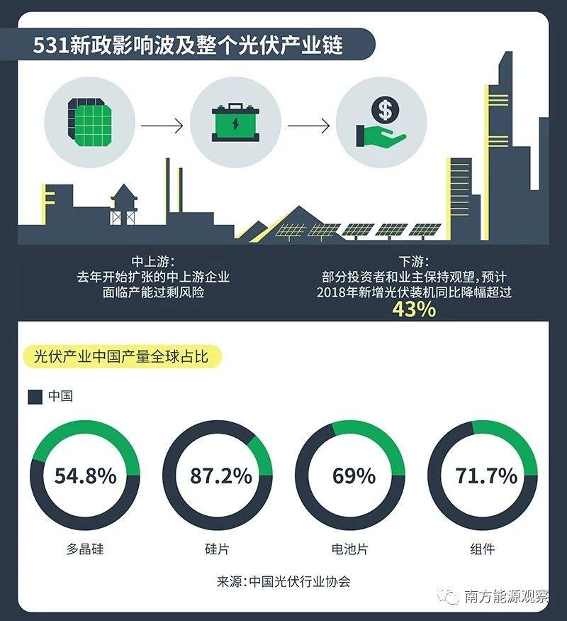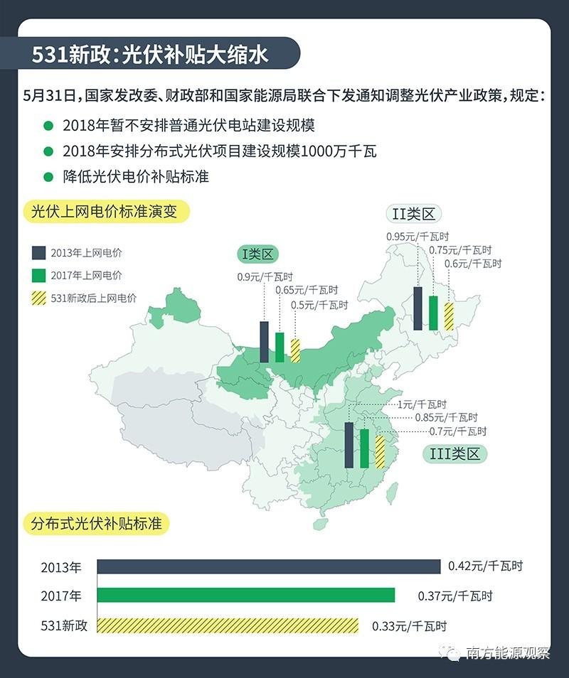 這是中國光伏“531新政”后的一個行業(yè)縮影?!?31新政”是國家發(fā)改委、財政部、國家能源局聯(lián)合下發(fā)的一份關(guān)于控制光伏發(fā)電新建規(guī)模和加快補貼退坡的通知,因從2018年5月31日起實施而得名,也因其推出的突然性,而對光伏產(chǎn)業(yè)產(chǎn)生巨大震動。