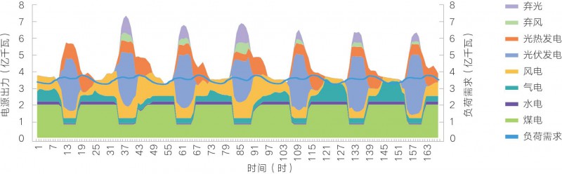 圖14 電氣化加速情景下2050年西北地區(qū)冬季典型周各類電源出力優(yōu)化結果