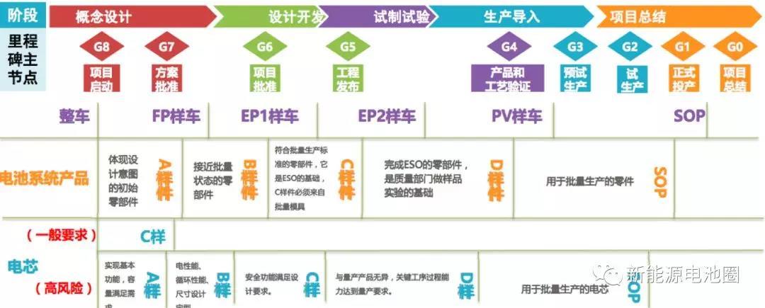 北汽的整車EVDP流程,每級子系統(tǒng)的開發(fā)驗證流程要先于母系統(tǒng),保證產(chǎn)品開發(fā)過程的可靠性。以上是基于電池系統(tǒng)與電芯同步開發(fā)情況下定義的開發(fā)流程。根據(jù)實際開發(fā)情況,會優(yōu)先選擇成熟度高的電芯產(chǎn)品。