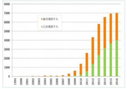 石墨烯專(zhuān)利新發(fā)明人時(shí)序分布