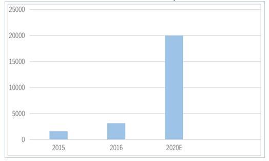全球石墨烯市場(chǎng)巨大,中國(guó)將成最大消費(fèi)國(guó)。目前全球石墨烯年產(chǎn)能已達(dá)到百?lài)嵓?jí),業(yè)內(nèi)預(yù)計(jì)未來(lái)五年到十年,石墨烯年產(chǎn)能將達(dá)到千噸級(jí)。鋰電大數(shù)據(jù)統(tǒng)計(jì)顯示,2015年,全球石墨烯市場(chǎng)規(guī)模約為 453 萬(wàn)美元,石墨烯正處于大規(guī)?;跋?,預(yù)計(jì)到 2020年市場(chǎng)規(guī)??蛇_(dá)到 3.85 億美元,2025 年石墨烯規(guī)模將達(dá) 21.03 億美元。中國(guó)石墨烯產(chǎn)業(yè)聯(lián)盟統(tǒng)計(jì)顯示,中國(guó)石墨烯生產(chǎn)企業(yè)已經(jīng)從 2015 年的300 多家增長(zhǎng)到 2016 年的 400多家,石墨烯產(chǎn)業(yè)規(guī)模從 2015 年的 1630 萬(wàn)美元增長(zhǎng)到2016 年的3842萬(wàn)美元,發(fā)展態(tài)勢(shì)喜人。隨著石墨烯量產(chǎn)的解決和石墨烯下游的拓展,產(chǎn)業(yè)聯(lián)盟預(yù)計(jì)中國(guó) 2020 年石墨烯市場(chǎng)規(guī)模將達(dá)到 2 億美元,占世界市場(chǎng)規(guī)模超過(guò)一半,成為全球最大的石墨烯消費(fèi)國(guó)家。