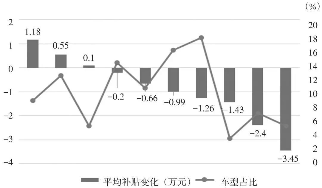 圖 2 推薦車型的補(bǔ)貼變化及其占比