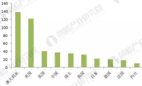 圖表3:2017年三季度全球新增在建/規(guī)劃電化學(xué)儲(chǔ)能項(xiàng)目裝機(jī)規(guī)模排名前十的國(guó)家(單位:MW)