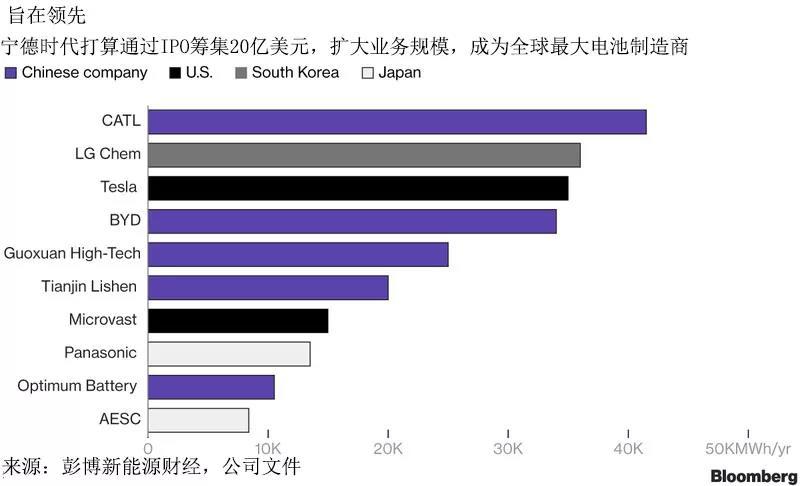 寧德時(shí)代可能在2018年晚些時(shí)候進(jìn)行路演。此次上市的承銷商包括高盛集團(tuán)和中信建投證券。等到產(chǎn)量24千兆瓦時(shí)的新工廠建成后,寧德時(shí)代將在電池制造產(chǎn)能排行榜上名列首位。目前,包括正在生產(chǎn)和即將投產(chǎn)的工廠在內(nèi),該公司每年的產(chǎn)能是17.5千兆瓦時(shí)。每千兆瓦時(shí)相當(dāng)于100萬(wàn)千瓦小時(shí)的電力,足夠?yàn)?00萬(wàn)戶家庭提供一小時(shí)的電力。