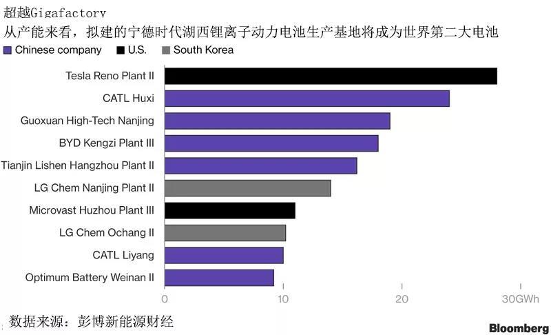 彭博新能源財(cái)經(jīng)在2017年11月的報(bào)告中稱,這家工廠將把總產(chǎn)量提高到41.5千兆瓦時(shí),超過(guò)LG化學(xué)的產(chǎn)量。相比之下,特斯拉的超級(jí)工廠將擁有35千兆瓦時(shí)的產(chǎn)能。