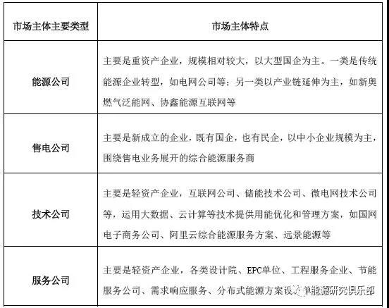 表4 綜合能源服務(wù)主要市場(chǎng)參與主體