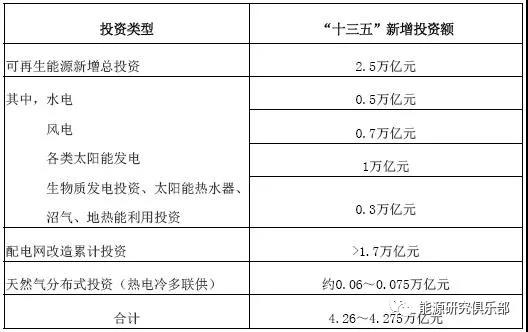 從投資的角度看,綜合能源服務(wù)所涉及的要素中僅可再生能源、配電網(wǎng)改造、天然氣分布式三個(gè)領(lǐng)域“十三五”期間的新增投資規(guī)模,預(yù)計(jì)約4.26~4.275萬(wàn)億元,具體見(jiàn)表3。