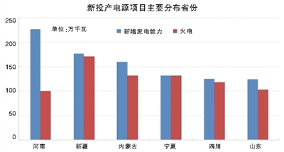 分省份看,新投產(chǎn)電源項(xiàng)目主要集中在河南、新疆、內(nèi)蒙古、寧夏、四川、山東。