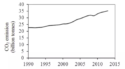 車輛數(shù)量的增長已經(jīng)導(dǎo)致兩個(gè)主要問題,即,交通擁堵和二氧化碳(CO2)的排放過量。一般來說,常規(guī)車輛在消耗大約總?cè)剂夏芰?5%[2,3],其余以CO2,一氧化碳,氮氧化物,碳?xì)浠衔?,水和其他溫室氣體(GHG)的形式消散熱量; 總氣體排放量的83.7%為CO2 [4] 。CO2排放量,從1990年的227億噸急劇增加至2013的 352.7億噸[5]中,如圖1所示。隨著CO2從1990年開始的緩慢上升,見于圖1,在未來十年,該增長率從2003年至2008年逐年加快。在2013年,排放量減小至3.80-2.00%。二氧化碳是導(dǎo)致全球變暖的溫室氣體之一,這是一個(gè)嚴(yán)重的全球環(huán)境問題。