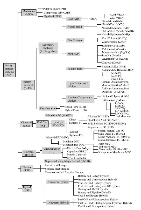 圖3根據(jù)它們的結(jié)構(gòu)形式和材料成分劃分的儲(chǔ)能系統(tǒng)分類(ESS)。