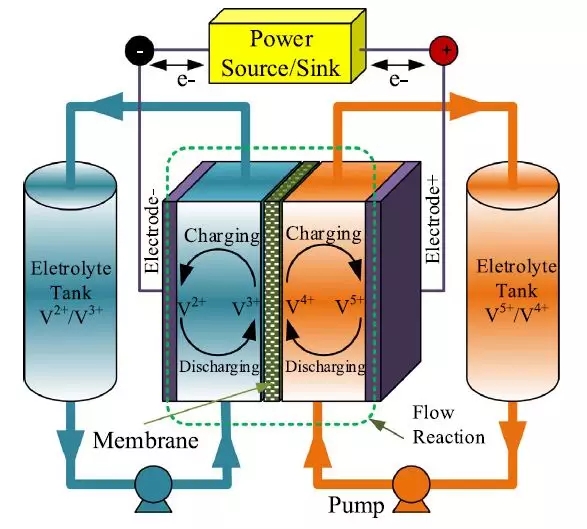 圖5釩氧化還原液流電池系統(tǒng)[47] 。