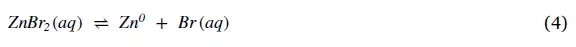 鋅鹵電池包括Zn-Cl2 和Zn-Br2,這些電池在EV能源存儲(chǔ)方面是可行的。1970年開發(fā)了用于電動(dòng)汽車和靜態(tài)儲(chǔ)能的Zn-Cl2 [14]。Zn-CL2能量密度約90Wh/ L,功率密度約60瓦/千克。Zn-Br2電池適合用于EV能量儲(chǔ)存,其能量密度70瓦時(shí)/千克,具有快速充電能力,和低的材料成本 [14,45,70,71]。然而,這種電池類型由于具有較低的比功率(90 W / kg),溴的高反應(yīng)性以及電解液循環(huán)和溫度控制系統(tǒng)尺寸較大,因此近年來在EV中的應(yīng)用已經(jīng)很少[14,45,70]。仍然有研發(fā)正在推進(jìn)用于車輛的Zn-Br2 電池 [71]。Zi-Br2 電池的整體電化學(xué)反應(yīng)用方程 (4)。