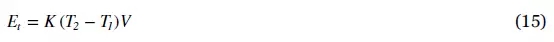 其中Et 是儲(chǔ)存在V體積中的熱能,K是熱系數(shù),T1 和T2 分別是溫升前后的溫度。