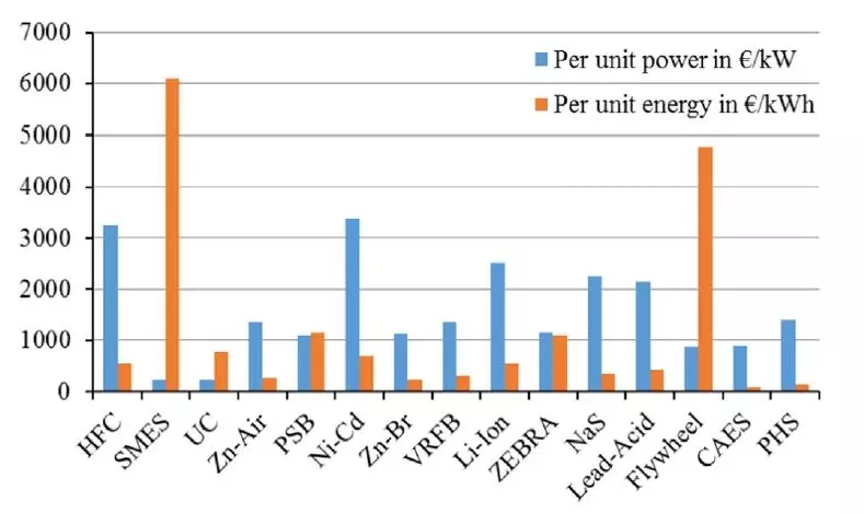 圖21.用于大規(guī)模儲(chǔ)能的ESS總資本成本[69]。