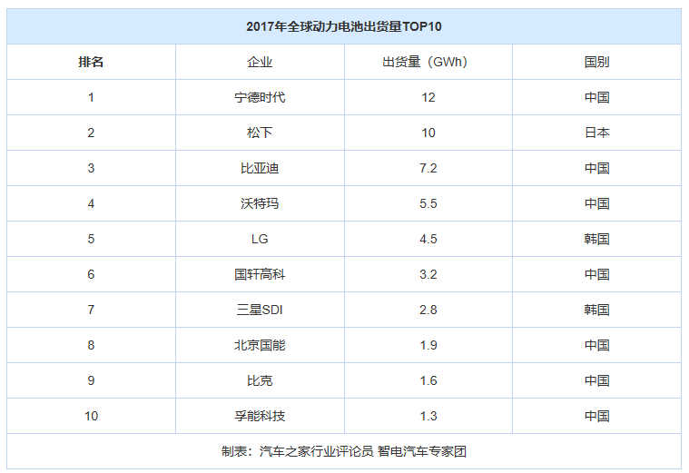 2016-2017年中國主流動力電池品牌產(chǎn)能擴充情況