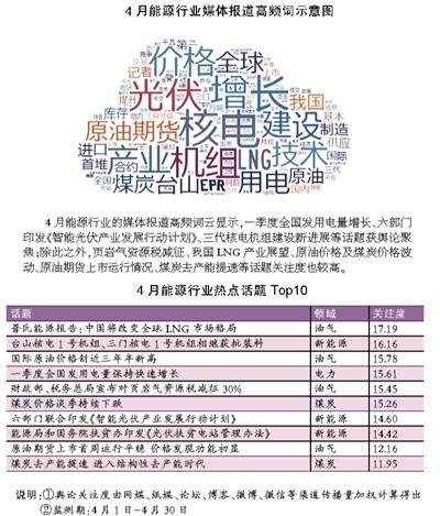 人民網(wǎng)輿情數(shù)據(jù)中心通過梳理4月能源行業(yè)十大話題、能源領(lǐng)域精彩言論、熱門能源企業(yè)以及新近出臺的能源行業(yè)新規(guī)新政,解讀當(dāng)前能源輿情熱點。