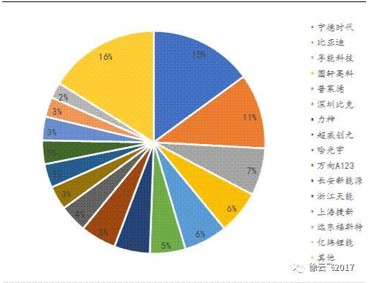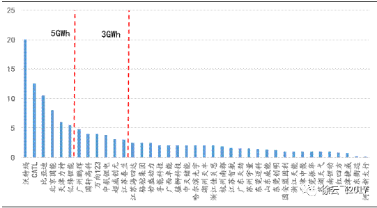 圖1:2017年底動力電池企業(yè)產(chǎn)能分布(單位:GWh)