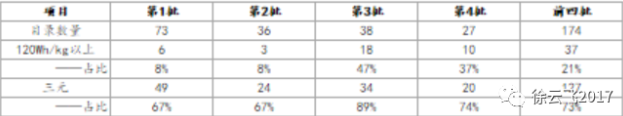 表3:2017年1-4批乘用車目錄:能量密度提升,三元占比高