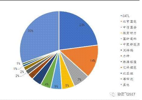 圖10:2017年1-4批乘用車目錄電池配套占比