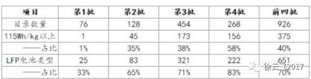 表2:2017年1-4批客車目錄:密度提升,LFP為主