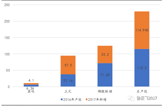 圖2:2016-2017年三元產(chǎn)能結(jié)構(gòu)比例增加