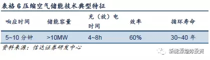 傳統(tǒng)的壓縮空氣儲能是用電動機驅(qū)動多級壓縮機將空氣壓縮并存于儲氣單元中,在能量釋放時,將高壓氣體從儲氣單元釋放。隨后通入多級透平膨脹做功,完成空氣壓力能到電能的轉(zhuǎn)換。其特點是容量大(可達100MW以上)、充放電時間長、單位建造成本和運行成本較低、系統(tǒng)壽命長等。但是由于空氣儲能需要和燃氣輪機電站配套使用,效率只能達到60%左右,因此大大限制了其應用范圍,同時,啟動時間較長(僅比火電啟動時間要短)也限制了其應用場景。如德國在1978年就建成了290MW裝機容量的壓縮空氣儲能電站,其充氣時間為8h,放電時間為2h,將補燃所消耗的能量算在內(nèi)時系統(tǒng)效率只有46%。美國在1991年建成的空氣壓縮儲能電站裝機容量為110MW,充氣時間為41h,放電時間為26h,將補燃所消耗的能量算在內(nèi)時系統(tǒng)效率為54%。