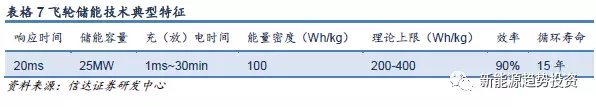 但是飛輪儲能的主要缺點在于其空載下的能量損失大,每小時超過2.5%。盡管飛輪儲能理論能量密度高達200-400Wh/kg,但是在實際應用過程中,限于材料的因素,安全穩(wěn)定運行的飛輪的儲能密度通常不高于100Wh/kg,此外,價格昂貴也是影響飛輪儲能推廣的因素之一。從技術(shù)研發(fā)的角度看,一方面將飛輪國產(chǎn)化以降低成本是大勢所趨,另一方面尋求新型飛輪材料以提升能量密度或者降低成本是飛輪儲能應用推廣的關(guān)鍵??傮w上來說,由于飛輪儲能屬于功率型儲能,其應用場景在于調(diào)頻,平滑新能源輸出波動上,同時由于其放電時間較短(屬于分秒級應用),目前主要應用在UPS中。