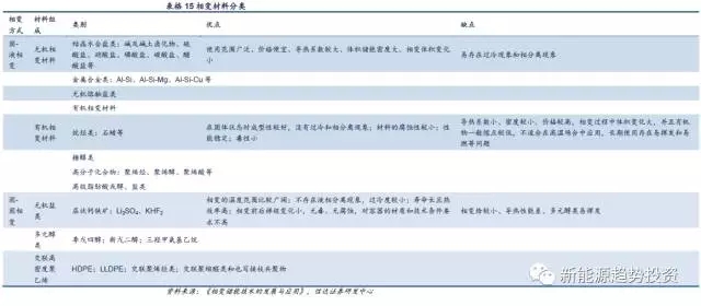 相變儲熱是利用箱變材料在物態(tài)變化時,吸收或放出大量潛熱而進行儲能。根據(jù)相變形式不同可以分為固-固相變、固-液相變和氣液相變,而依據(jù)相變材料不同可以分為有機相變材料和無機相變材料,每種類型下還可細分不同類型。理想的相變材料應該具有以下性質(zhì):高焓值、導熱系數(shù)高、有合適的相變點、高比熱容、體積膨脹率小、無相分離和過冷現(xiàn)象、循環(huán)穩(wěn)定性高、腐蝕性小、不然、無毒、低成本,目前還沒有相變材料可以同時滿足上述所有條件。