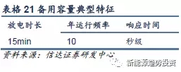 備用容量是指在滿足預計負荷需求以外,針對突發(fā)情況時為保障電能質(zhì)量和系統(tǒng)安全穩(wěn)定運行而預留的有功功率儲備,一般備用容量需要在系統(tǒng)正常電力供應容量的15~20%,且最小值應等于系統(tǒng)中單機裝機容量最大的機組容量。在我國,備用容量服務分為旋轉(zhuǎn)備用、非旋轉(zhuǎn)備用和其他備用。備用容量一般應用在發(fā)電機組在下線到上線的這段時間內(nèi),放電時間相對較短,但是要求有較大的功率來將儲存的能量在短時間內(nèi)釋放出去,因此是功率型應用。