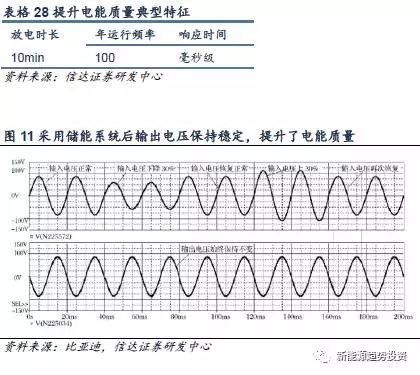 由于存在電力系統(tǒng)操作負荷性質(zhì)多變,設備負載非線性等問題,使得用戶獲得的電能存在電壓、電流變化或者頻率偏差等問題,此時電能的質(zhì)量較差。系統(tǒng)調(diào)頻、無功支持就是在發(fā)電側(cè)和輸配電側(cè)提升電能質(zhì)量的形式。在用戶側(cè),儲能系統(tǒng)同樣可以進行平滑電壓、頻率波動,例如利用儲能解決分布式光伏系統(tǒng)內(nèi)電壓升高、驟降、閃變等問題。提升電能質(zhì)量屬于典型的功率型應用,具體放電市場及運行頻率依據(jù)實際應用場景而有所不同,但一般要求響應時間在毫秒級。