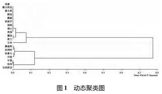 (3)聚類分析將樣本國家分為三類,第一類:澳大利亞、美國、德國和日本等11個(gè)國家,光伏產(chǎn)業(yè)政策效率處于相對(duì)較高的水平;第二類為中國、法國和馬來西亞,光伏產(chǎn)業(yè)政策效率處于相對(duì)中等的水平;第三類為奧地利、比利時(shí)、加拿大和丹麥,光伏產(chǎn)業(yè)政策效率處于相對(duì)較低的水平。