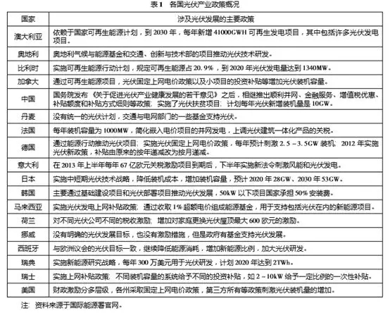 1、各國光伏產(chǎn)業(yè)政策分析