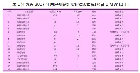 此外,在用戶側規(guī)劃儲能設備,不存在布點問題;并且因為我國目前實行分時電價和針對工商業(yè)用戶的兩部制電價政策,所以用戶側分布式儲能的引入多從經濟性角度出發(fā),以減少電費或最大化收益為目標開展儲能配置研究。江蘇 2017年用戶側分布式儲能規(guī)劃建設情況如表 1 所示。從表 1可以看出,當前用戶儲能的建設目標還是以需求響應(價差套利)和提高供電可靠性為主,對電網的支撐作用主要是削峰填谷。