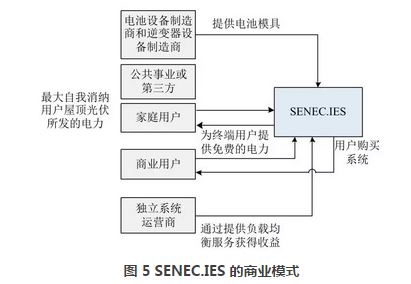 目前,與分布式光伏組合形成的分布式光儲系統(tǒng)在國外已有較多的商業(yè)應用,在不同的國家,分布式光儲發(fā)電的應用重點各不相同,美國加州在工商業(yè)領域的分布式項目居多,澳大利亞和德國市場的重點在戶用儲能領域。以德國 SENEC.IES 公司為例,該公司將用戶側儲能聚集起來開展“免費午餐”模式,享有對電池的主要控制權,當電網“零電價”時控制電池從電網充電。用戶主要通過最大化地自我消納屋頂光伏所發(fā)的電力、使用 SENEC.IES 提供給用戶的“免費儲存的電力”,實現更低的電費賬單,進而獲益。SENEC.IES 的商業(yè)模式見圖5。