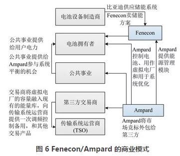 Fenecon/Ampard 開展的虛擬電廠模式,將Ampard 的能源管理模塊與 Pro Hybrid 儲能系統(tǒng)集成起來,使其可以在用戶側被用作虛擬電廠。用戶為了增加自發(fā)自用而購買儲能系統(tǒng),Ampard 利用他們的能源管理系統(tǒng)(Ampard Energy Manager)將這些系統(tǒng)管理起來,為這些儲能系統(tǒng)增加虛擬電廠的功能提供一次調頻控制和備用等服務。Fenecon/Ampard 的商業(yè)模式見圖6。