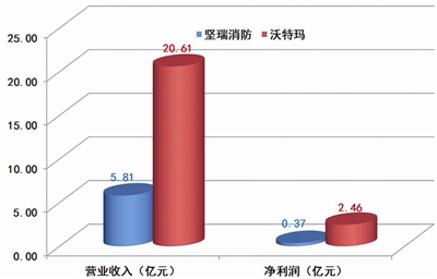 圖三 2015年堅瑞消防和沃特瑪營業(yè)收入和凈利潤情況