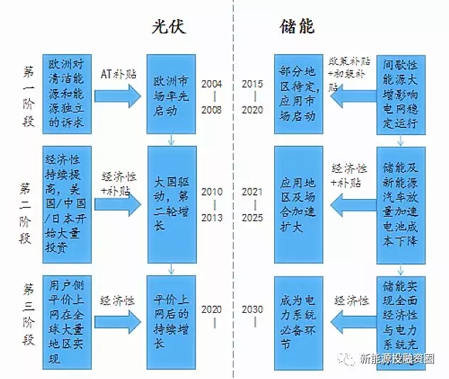 技術(shù)進(jìn)步背景下的規(guī)模發(fā)展,是新能源成本下降的核心邏輯。以光伏為例,2008年至今,光伏度電成本下降80%以上(當(dāng)前下降的趨勢(shì)仍在持續(xù)),而儲(chǔ)能同樣適用。盡管在成本約束下,當(dāng)前我國(guó)的鋰電儲(chǔ)能市場(chǎng)處在從示范項(xiàng)目向商業(yè)化初期過(guò)渡階段。隨著《儲(chǔ)能技術(shù)與產(chǎn)業(yè)發(fā)展指導(dǎo)意見(jiàn)》的落地,儲(chǔ)能發(fā)展路徑與應(yīng)用前景得以明確,在我國(guó)電力體制改革深入實(shí)施背景下,儲(chǔ)能的準(zhǔn)入機(jī)制、結(jié)算模式的將進(jìn)一步得到規(guī)范(例如調(diào)頻市場(chǎng)定價(jià)機(jī)制)。隨著儲(chǔ)能技術(shù)進(jìn)步與成本下降,“儲(chǔ)能+”應(yīng)用領(lǐng)域打開(kāi),儲(chǔ)能商業(yè)化有望提前進(jìn)入爆發(fā)期。