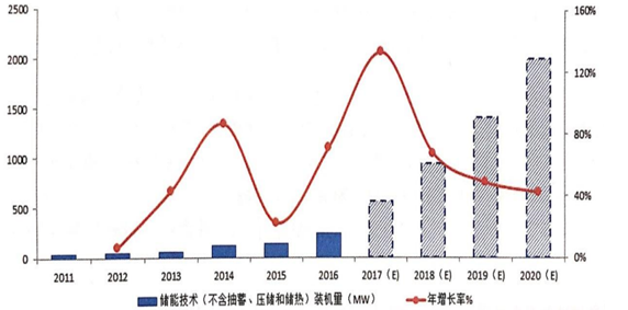 到 2020 年國(guó)內(nèi)電儲(chǔ)能累計(jì)裝機(jī)規(guī)模有望達(dá) 2GW