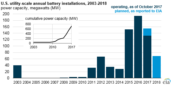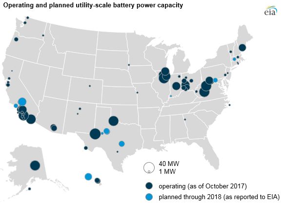 美國(guó)能源信息署(EIA)發(fā)布的2016年“年度發(fā)電機(jī)報(bào)告”中涵蓋了有關(guān)電池容量,充放電速率,存儲(chǔ)技術(shù)類(lèi)型,無(wú)功功率額定值,存儲(chǔ)技術(shù)類(lèi)型和預(yù)期使用情況等儲(chǔ)能情況的詳細(xì)信息。