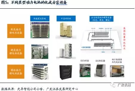 其中前端設(shè)備指:鋰電池生產(chǎn)過程中用于攪拌、涂布、輥壓、制片、分切等制造正負(fù)極片工序的設(shè)備。中端設(shè)備指:鋰電池生產(chǎn)過程中用于電芯裝配工序,主要包括卷繞機(jī)或疊片機(jī)、電芯入殼機(jī)、注液機(jī)以及封口焊接等設(shè)備。后端設(shè)備指:鋰電池生產(chǎn)過程中用于電芯激活化成、分容檢測以及組裝成電池組等工藝的設(shè)備。