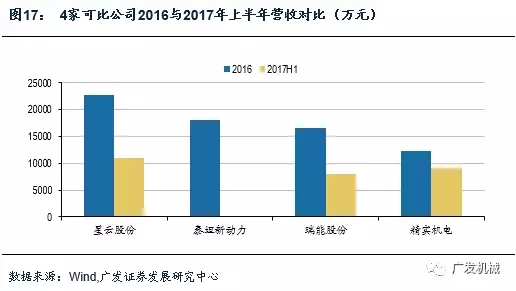 從2017年上半年實現(xiàn)收入規(guī)模來看,精實機(jī)電上半年營業(yè)收入為 9179萬元(未經(jīng)審計),已實現(xiàn)16年全年收入的75%,為可比公司中最高。
