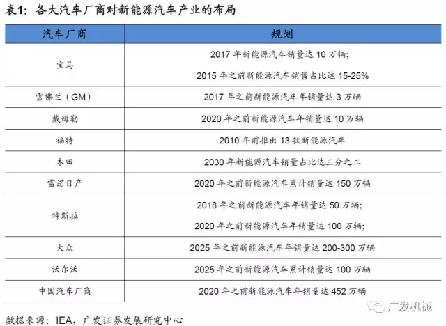 全球各大汽車廠商都在規(guī)劃新能源汽車產(chǎn)業(yè)。面對新能源汽車的高速發(fā)展,全球各個汽車廠家各自發(fā)布了雄心勃勃的新能源汽車計劃。根據(jù)IEA披露的各大汽車廠商對新能源汽車產(chǎn)業(yè)的規(guī)劃,到2020年,全球新能源汽車的保有量會達(dá)到900-2000萬輛。